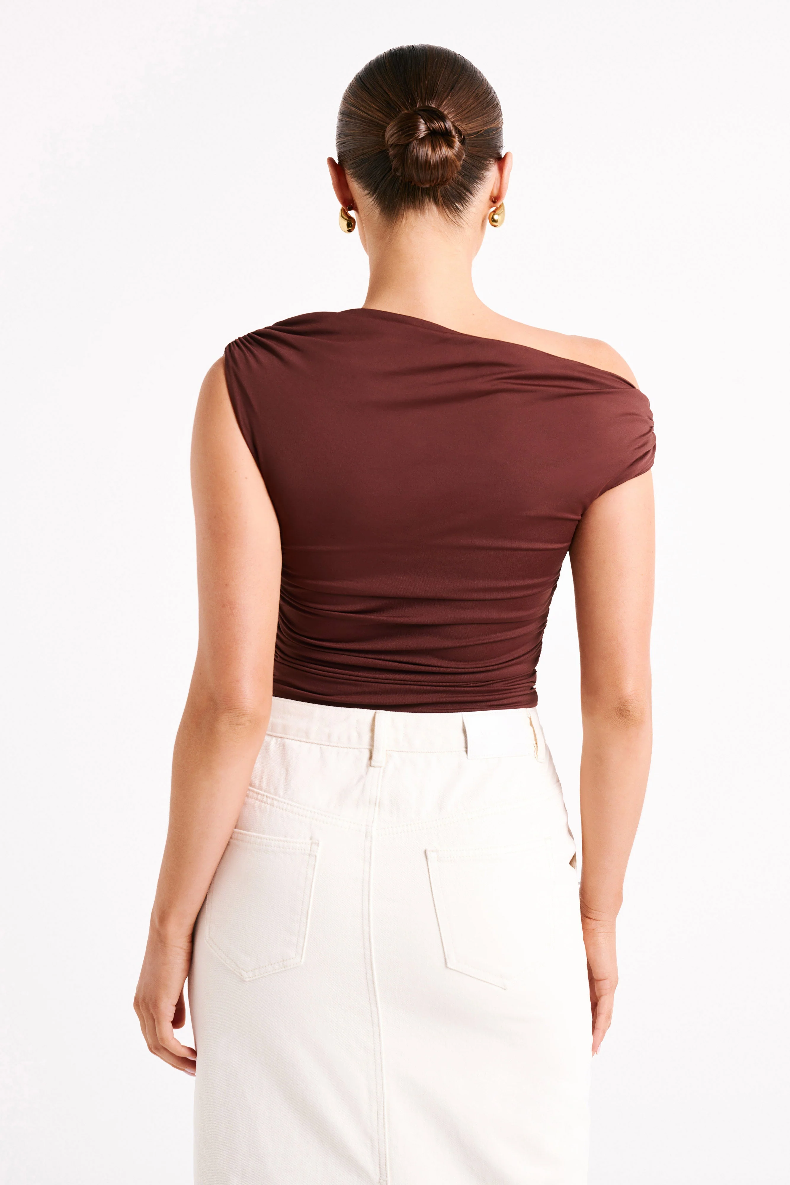 Alayna Recycled Nylon Ruched Top - Chocolate