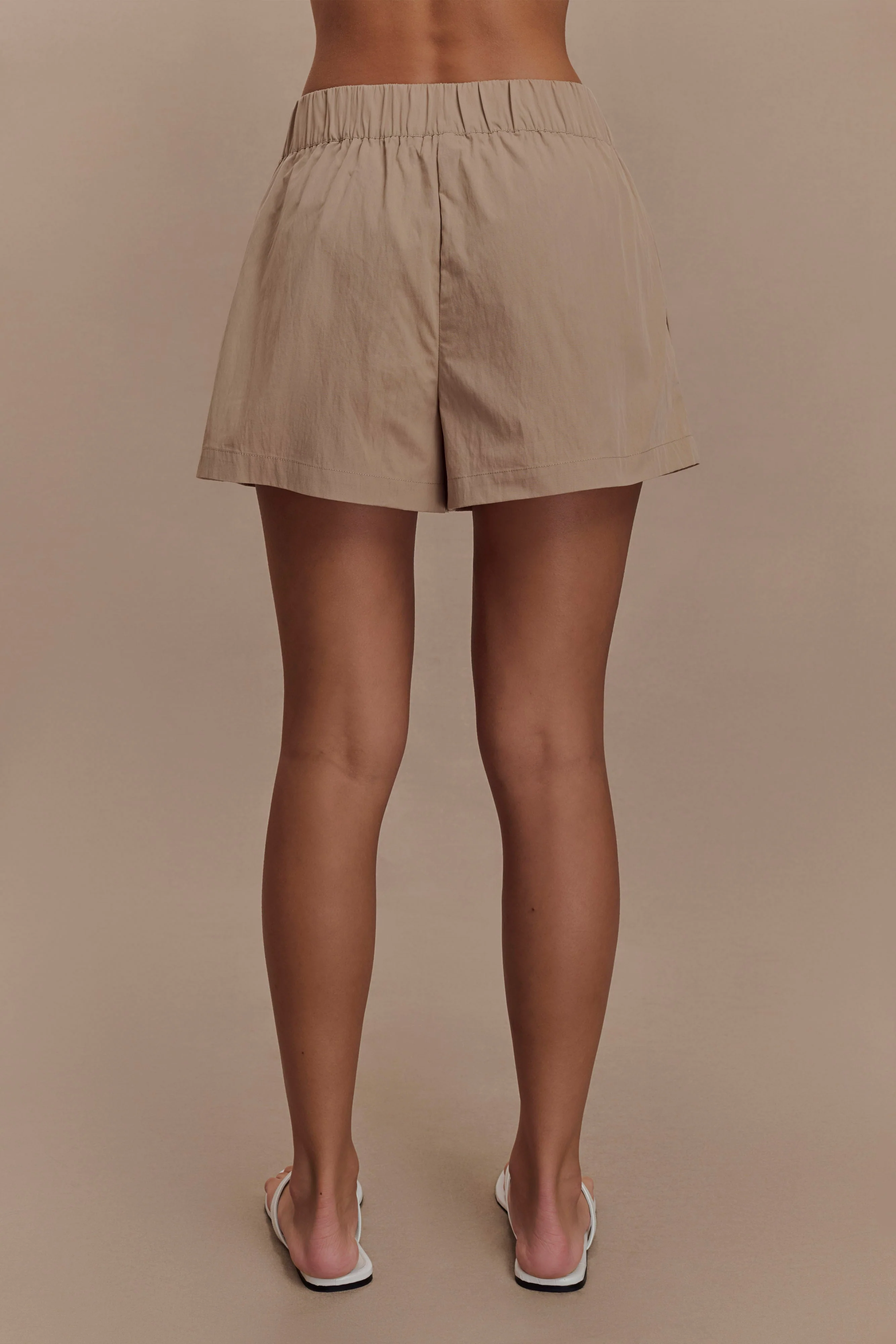 The JOHANNA Cotton Relaxed Shorts bring effortless comfort to your everyday wardrobe. Featuring a mid-rise fit and an elastic waist, these shorts provide a secure, flexible fit perfect for laid-back days. The straight leg design and mini length offer a flattering silhouette, while the non-functional button fly adds a touch of casual charm. Made from breathable cotton, these shorts are ideal for warm weather. Pair them with the Campbell Cotton Oversized Shirt for a breezy, coordinated outfit that blends relaxed comfort with effortless style.